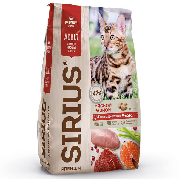 Покупайте Корм для взрослых кошек Sirius мясной рацион с доставкой или самовывозом по справедливым ценам от производителя Лимкорм