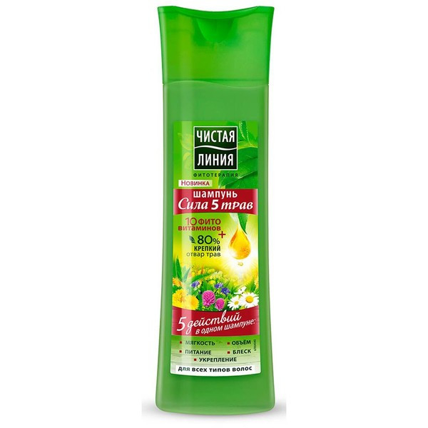 Шампунь Чистая Линия Сила 5 трав для всех типов волос, 0.4л