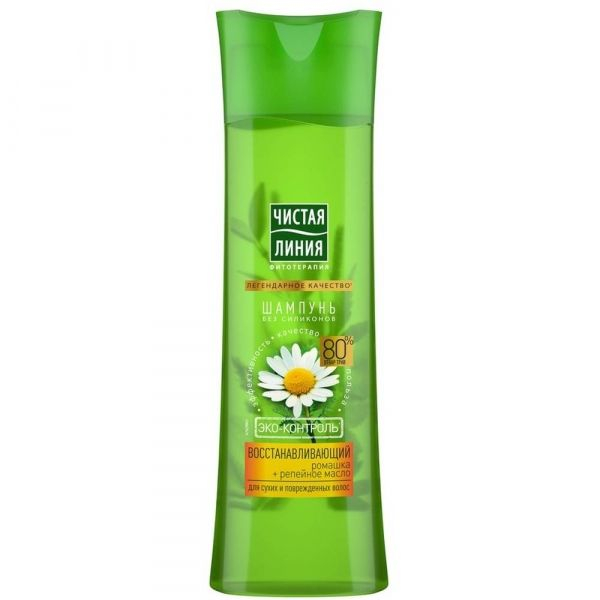 Шампунь Чистая Линия Восстанавливающий отвар целебных трав с экстрактом ромашки для сухих и поврежденных волос, 0.4л