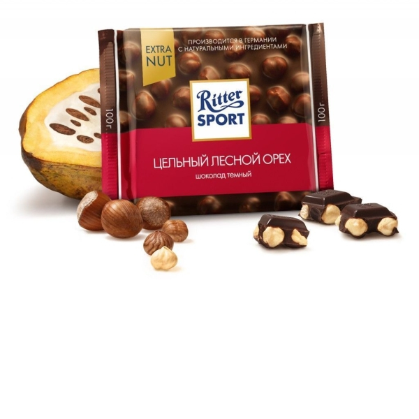 Покупайте Шоколад горький Риттер Спорт Цельный лесной орех с доставкой или самовывозом по справедливым ценам от производителя Ritter Sport