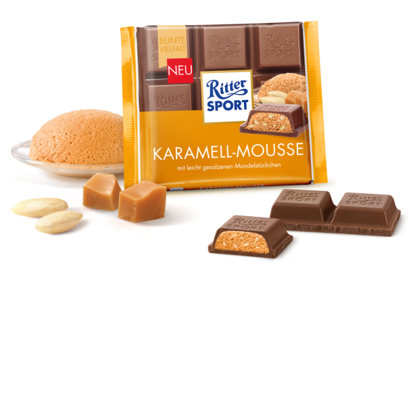 Покупайте Шоколад молочный Риттер Спорт Карамельный мус с доставкой или самовывозом по справедливым ценам от производителя Ritter Sport
