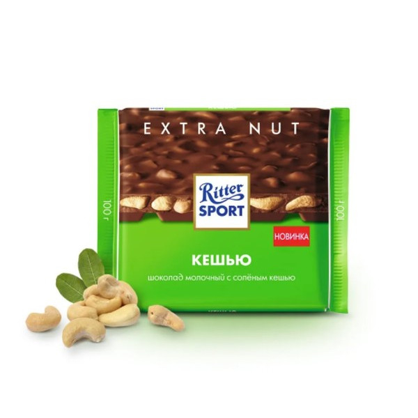 Покупайте Шоколад молочный Риттер спорт с кусочками соленого кешью с доставкой или самовывозом по справедливым ценам от производителя Ritter Sport