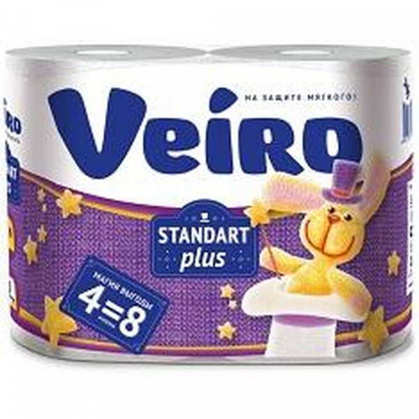 Туалетная бумага Veiro белая стандарт плюс 2-сл 4 рул, 0.0001кг