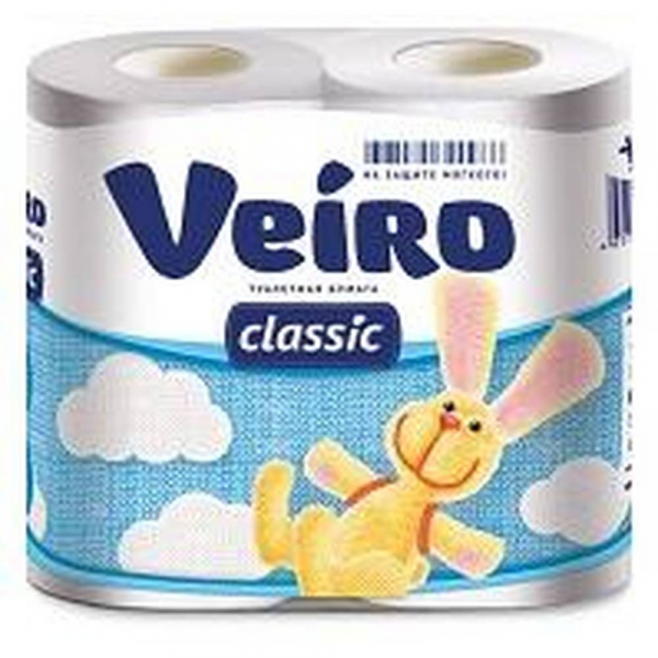 Туалетная бумага Veiro классик белая 2-сл 4 рул, 0.0001кг